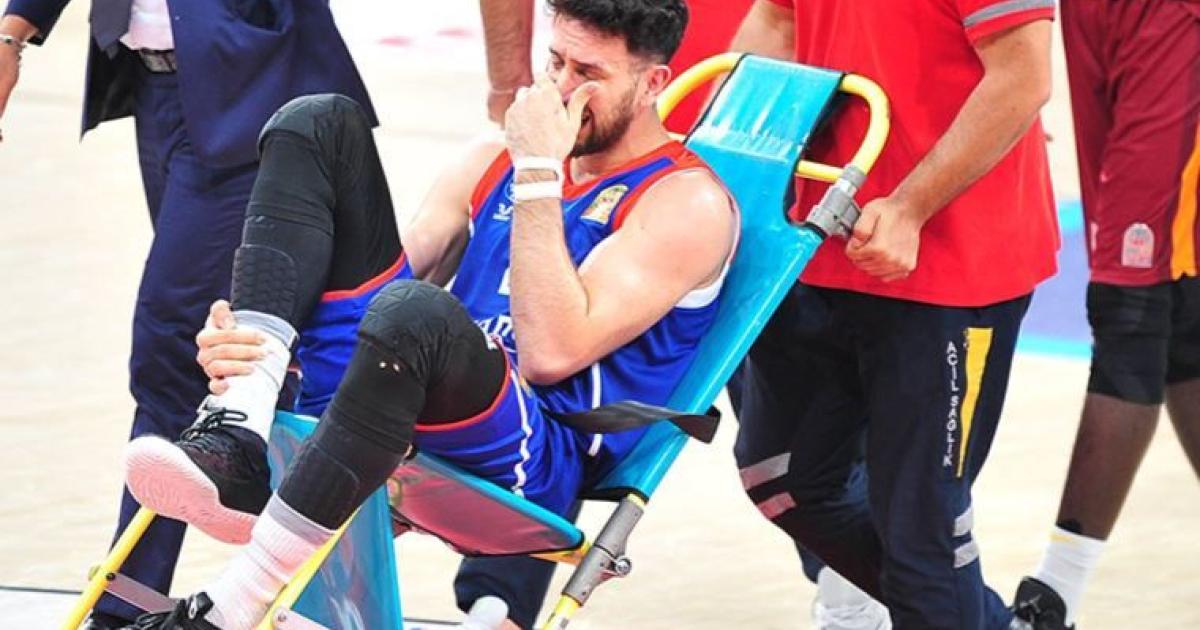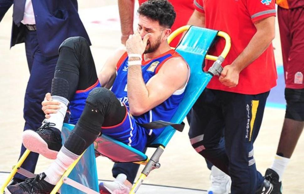 Με το σκορ στο 56-44, ο Σέρβος γκαρντ των πρωταθλητών Ευρώπης ευστόχησε σε τρίποντο όμως προσγειώθηκε άτσαλα στο παρκέ, βρίσκοντας και στο πόδι του παίκτη που προσπάθησε να του κάνει άμυνα.