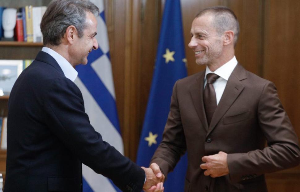 Το απόγευμα της Τετάρτης (24/8) ο πρωθυπουργός Κυριάκος Μητσοτάκης υποδέχτηκε στο Μέγαρο Μαξίμου τον πρόεδρο της UEFA, Αλεξάντερ Τσέφεριν, με τους δύο άνδρες να συζητούν τα προβλήματα τα οποία ταλανίζουν το ελληνικό ποδόσφαιρο και τις από κοινού πρωτοβουλίες της κυβέρνησης με την Ομοσπονδία για την επίλυσή τους.