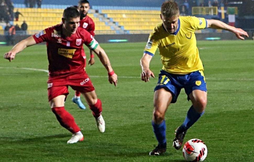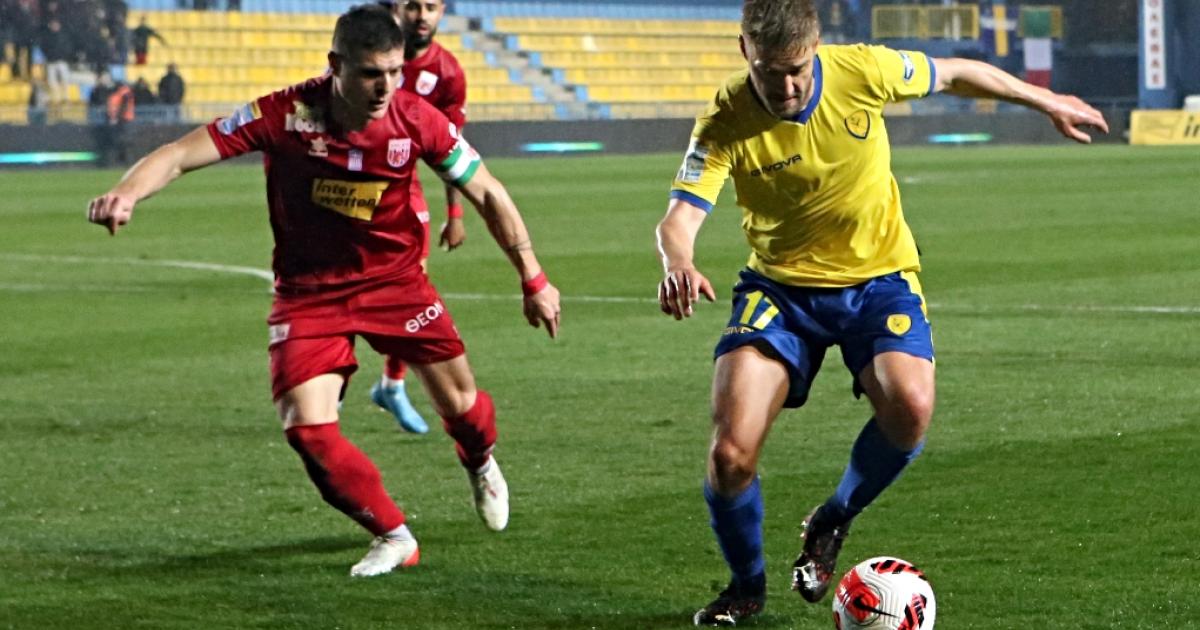 Οι γηπεδούχοι ήταν καλύτεροι από την αρχή της αναμέτρησης, απείλησαν στο 10’ με σουτ του Μεντόσα που δεν βρήκε στόχο, είχαν δοκάρι στο 41’ σε κεφαλιά του Νταγκό και άλλη μία καλή ευκαιρία στο φινάλε του πρώτου μέρους, με κεφαλιά του Καρέλη που έφυγε άουτ.