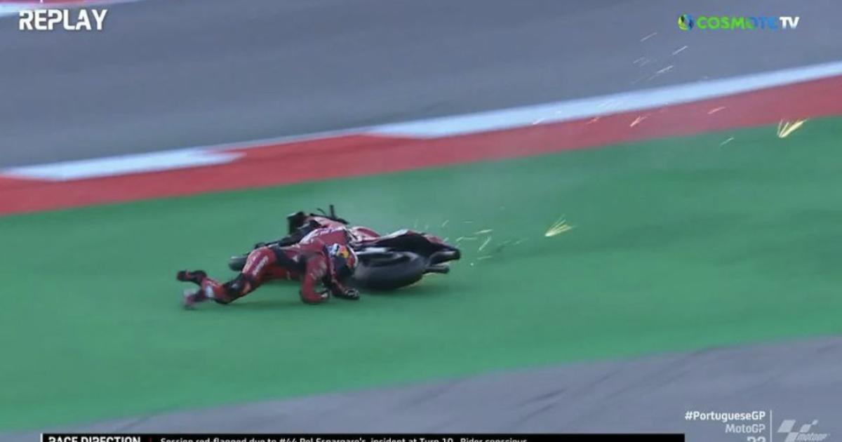 Ο Ισπανός αναβάτης της GasGas Factory έχασε τον έλεγχο της μοτοσυκλέτας του στη 10η στροφή της πίστας στο Πορτιμάο, με αποτέλεσμα να έχει μια πολύ άσχημη πτώση και να καταλήγει στα προστατευτικά κιγκλιδώματα μαζί με τη μηχανή του.