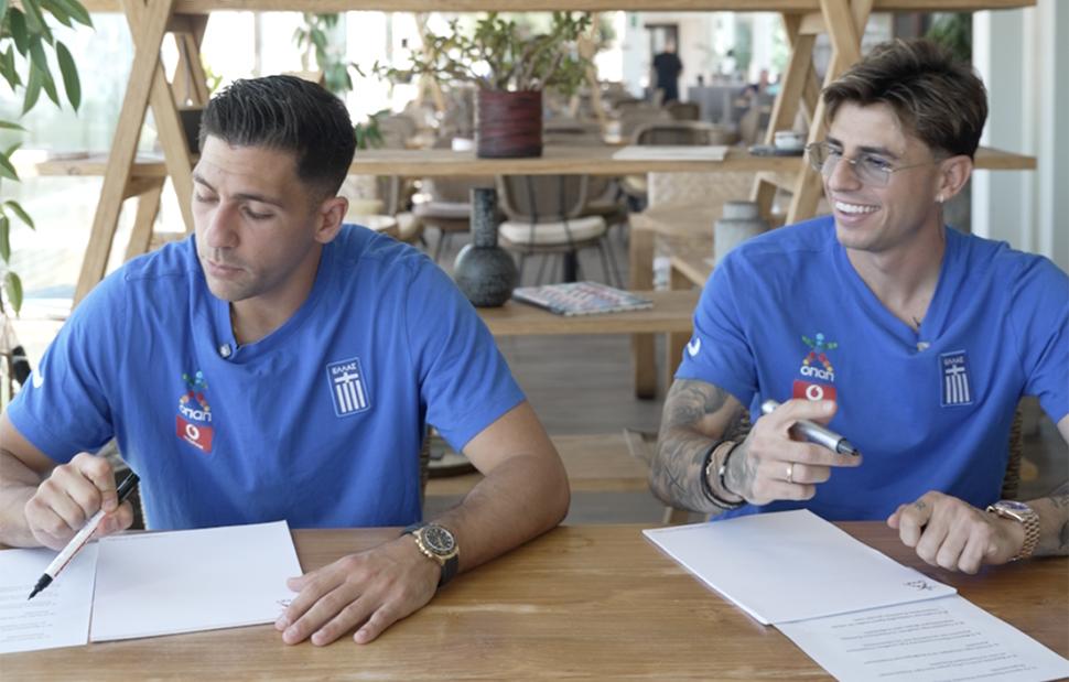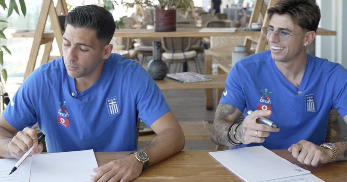 Στο πλαίσιο αυτό, βρέθηκε στο ξενοδοχείο όπου διαμένει η ομάδα του Ιβάν Γιοβάνοβιτς και υπέβαλε τους δύο Έλληνες διεθνείς σε ένα διασκεδαστικό κουίζ γνώσεων.