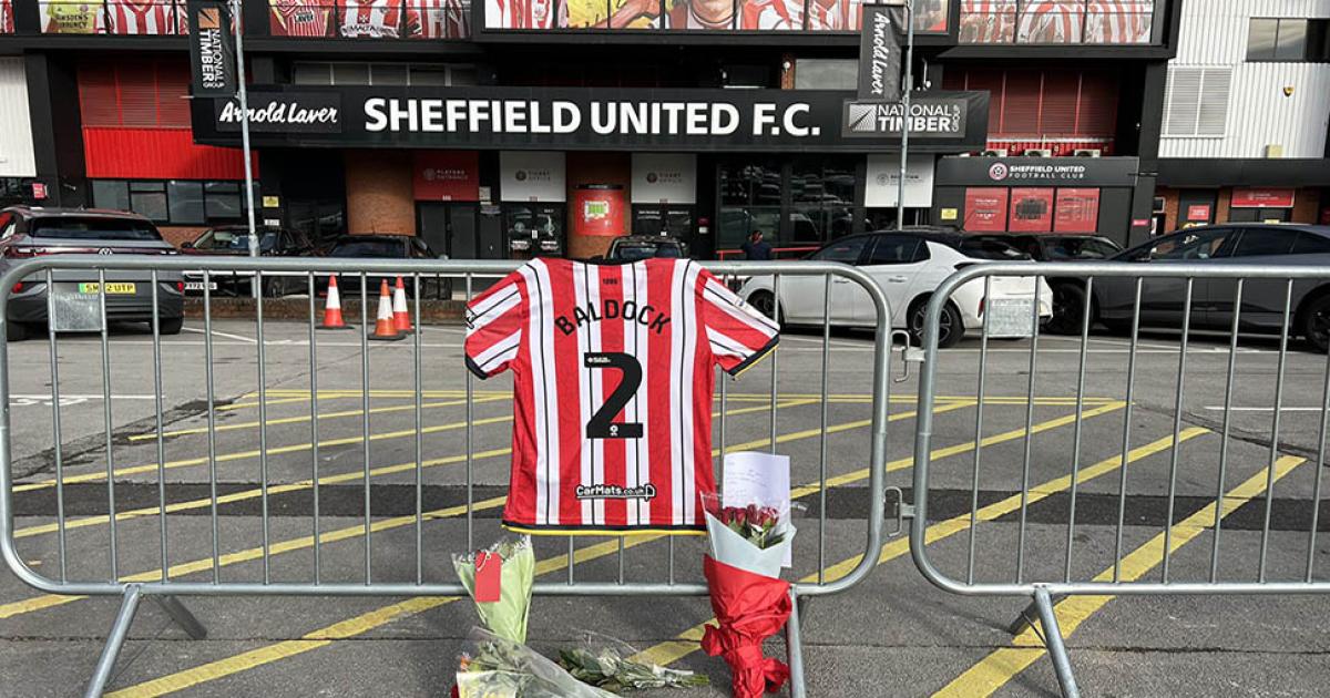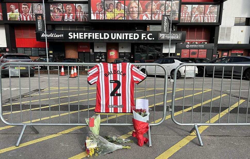Fans of @SheffieldUnited are starting to leave tributes at Bramall Lane in memory of their former defender George Baldock.