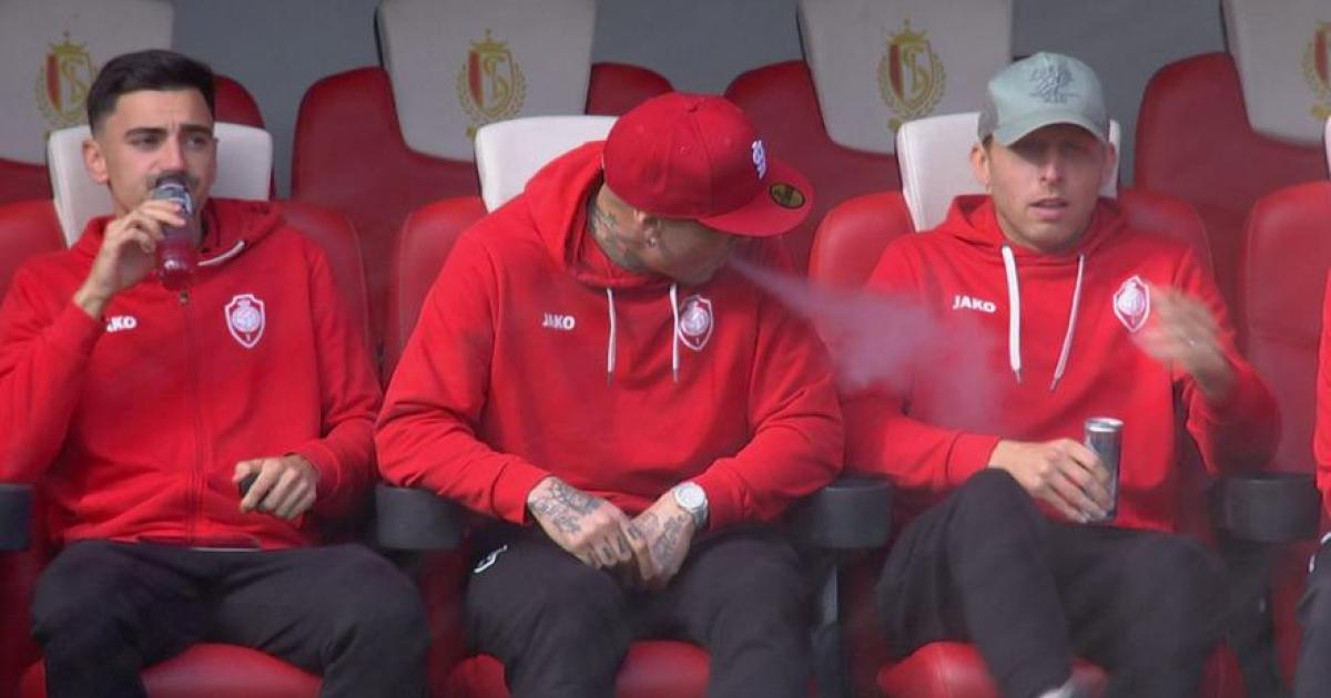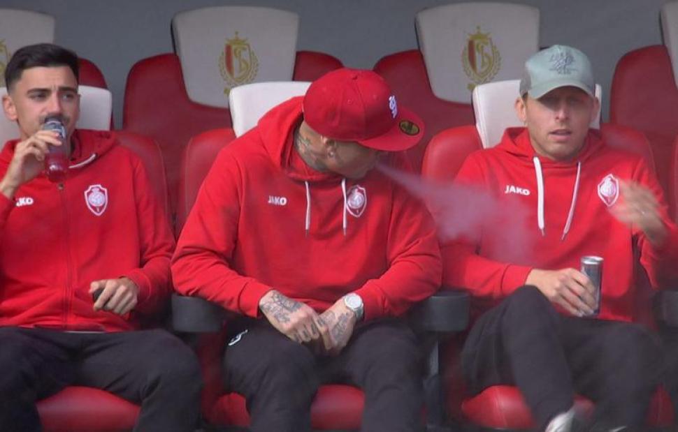 Ο φακός συνέλαβε τον 34χρονο άλλοτε άσο της Ρόμα και της Ίντερ να καπνίζει στον πάγκο της ομάδας του πριν από το ματς με τη Σταντάρ Λιέγης (3-0).