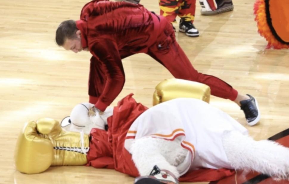 Όλα είναι διασκέδαση και παιχνίδι μέχρι να πληγωθεί κάποιος. Αυτό ακριβώς συνέβη στον άνδρα που υποδύεται τη μασκότ των Μαϊάμι Χιτ, Μπέρνι, καθώς χρειάστηκε να διακομιστεί σε νοσοκομείο την Παρασκευή το βράδυ μετά από δύο γροθιές που δέχθηκε από τον Κόνορ ΜακΓκρέγκορ κατά τη διάρκεια του Game 4 των τελικών του NBA στο Μαϊάμι.