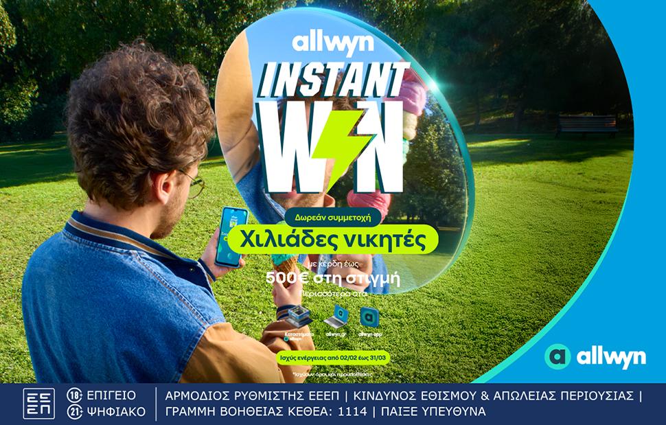 Μια από τις πρώτες εμπειρίες της νέας εποχής είναι το Instant Win, το οποίο δίνει για πρώτη φορά την ευκαιρία σε χιλιάδες τυχερούς να διεκδικήσουν κέρδη έως 500 ευρώ, με δωρεάν συμμετοχή στα καταστήματα Allwyn. Μάλιστα, οι συμμετέχοντες ενημερώνονται στη... στιγμή αν βρίσκονται ανάμεσα στους χιλιάδες νικητές που θα αναδείξει το Instant Win μέχρι και τις 31 Μαρτίου.