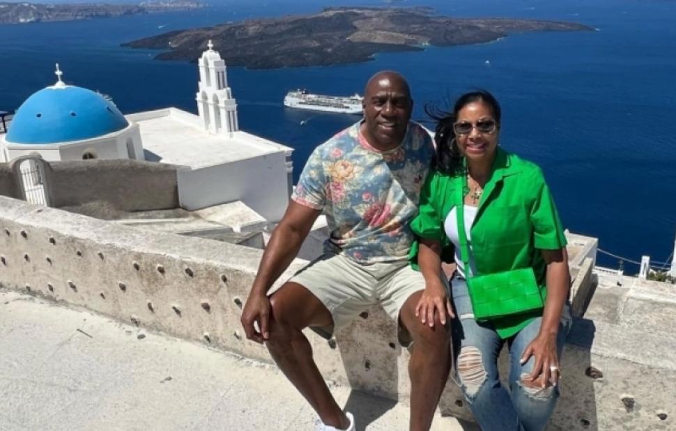 Ο Μάτζικ Τζόνσον συνεχίζει το tour στα ελληνικά νησιά και μετά από τη Μύκονο, βρέθηκε στη Σαντορίνη ανεβάζοντας τη σχετική φωτογραφία στα social media.