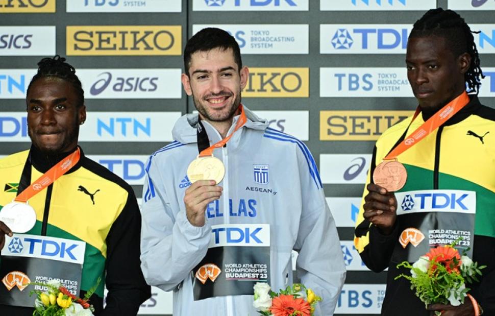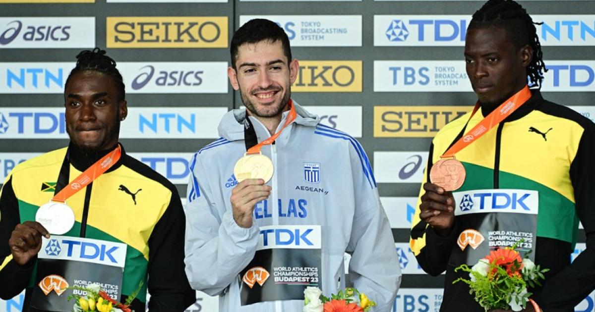 Στο στήθος του Μίλτου Τεντόγλου κρεμάστηκε το χρυσό μετάλλιο που κέρδισε στο Παγκόσμιο πρωτάθλημα στίβου της Βουδαπέστης.