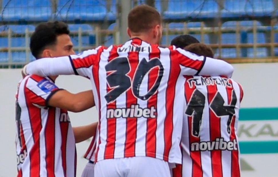 Οι Σερραίοι κατάφεραν να εξαργυρώσουν το αριθμητικό τους πλεονέκτημα προτού ολοκληρωθεί το πρώτο μέρος. Μπορεί ο Χατζηεμμανουήλ να έδιωξε σε κόρνερ το δυνατό, μακρινό σουτ του Βόλνεϊ Φέλτες (44’), δεν μπορούσε όμως να κάνει κάτι στην τελευταία φάση των καθυστερήσεων. Ο Ιβάν έφυγε στην αντεπίθεση, συνεργάστηκε πρώτα με τον Άλεξ Τεϊσέιρα και μετά με τον Τσαούση και με αριστερό, φαλτσαριστό πλασέ «ζωγράφισε» για το 0-1.