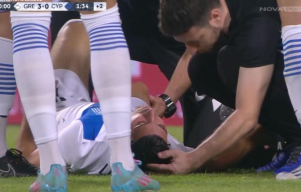 Οι Έλληνες διεθνείς παρακολουθούν με αγωνία τον συμπαίκτη τους, Δημήτρη Λημνιό να βρίσκεται πεσμένος στο χορτάρι. Ο μεσοεπιθετικός της Τβέντε, υπέστη ρήξη χιαστού σε μία ανύποπτη φάση στο φινάλε του αγώνα, παγώνοντας φιλάθλους και ποδοσφαιριστές, που ετοιμάζονταν να πανηγυρίσουν το εμφατικό 3-0 επί της Κύπρου.