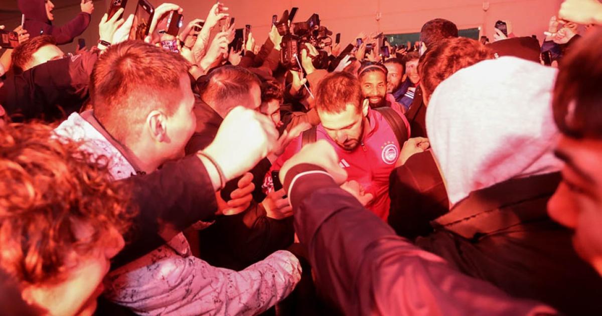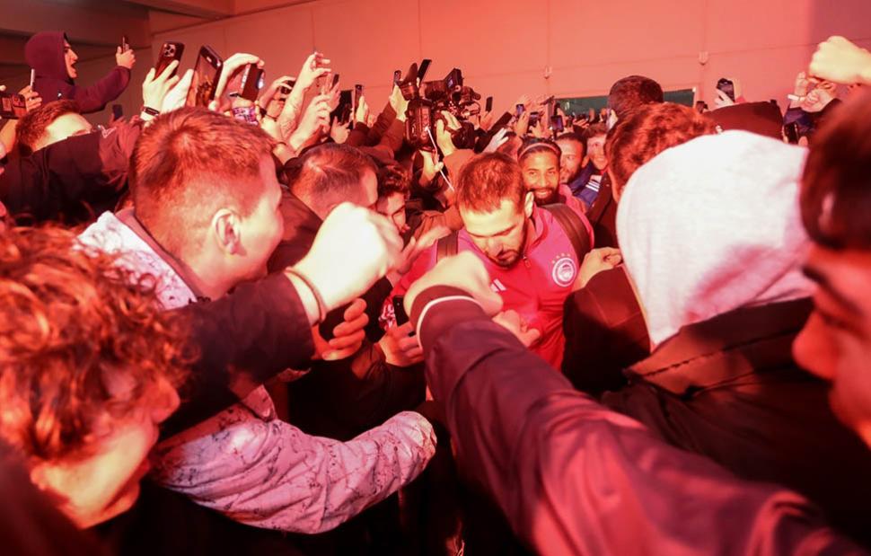 Στα κόκκινα βάφτηκε τα ξημερώματα της Παρασκευής το αεροδρόμιο «Ελευθέριος Βενιζέλος» από τους οπαδούς του Ολυμπιακού που βρέθηκαν εκεί για να υποδεχθούν τους ήρωες του Θρύλου μετά την επική πρόκριση στους 8 του Conference League το βράδυ της Πέμπτης.