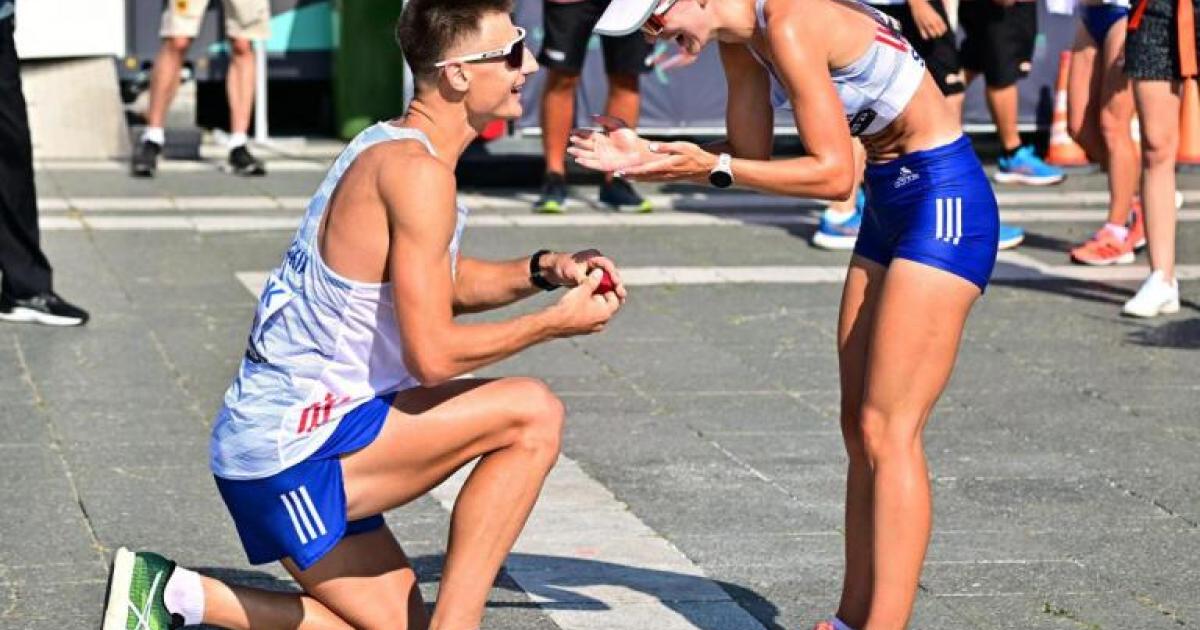 Hanka Burzalova a eu la merveilleuse surprise de se faire demander en mariage, sur la ligne d'arrivée par Dominik Cerny, qui venait d'achever sa course.#Budapest2023 #WorldAthleticsChamps