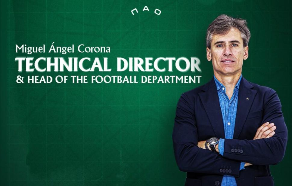 Ο Παναθηναϊκός ανακοίνωσε και επίσημα την πρόσληψη του Μιγκέλ Άνχελ Κορόνα ως νέου τεχνικού διευθυντή. Ο Ισπανός προσλήφθηκε επίσημα από τον Παναθηναϊκό για τη θέση του τεχνικού διευθυντή, αλλά και ως επικεφαλής του ποδοσφαιρικού τμήματος.