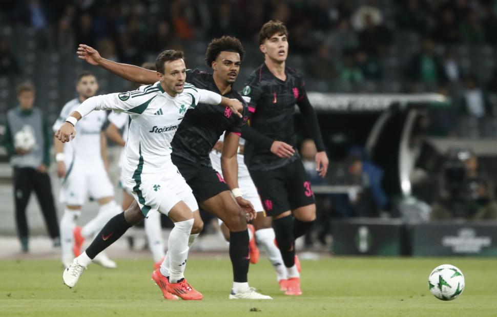 Σε κακό βράδυ βρέθηκε απόψε ο Παναθηναϊκός. Το «τριφύλλι» ήταν ανταγωνιστικό μόλις για ένα ημίχρονο κόντρα στην Τσέλσι, στο δεύτερο όμως… κατέρρευσε, με συνέπεια να ηττηθεί με σκορ 1-4 στο ΟΑΚΑ για τη 2η αγωνιστική της League Phase του Conference League.