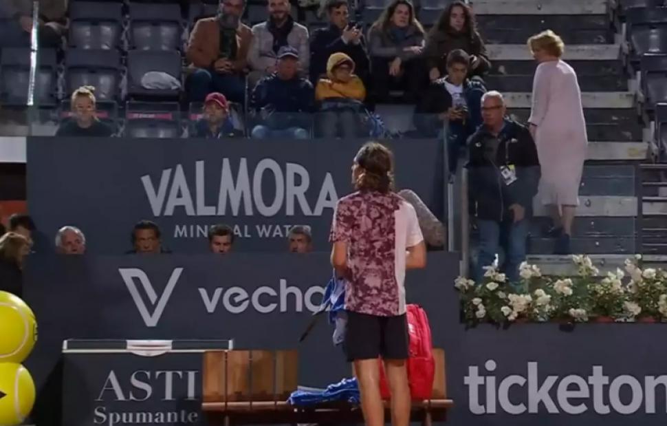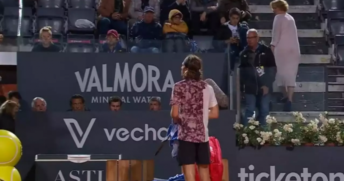 Και εν συνεχεία, πριν μπει στο κορτ για την έναρξη στο δεύτερο σετ -με τη μητέρα του να έχει πάει από πάνω του για να του πει κάτι- ο Τσιτσιπάς γύρισε και είπε προς τον διαιτητή: