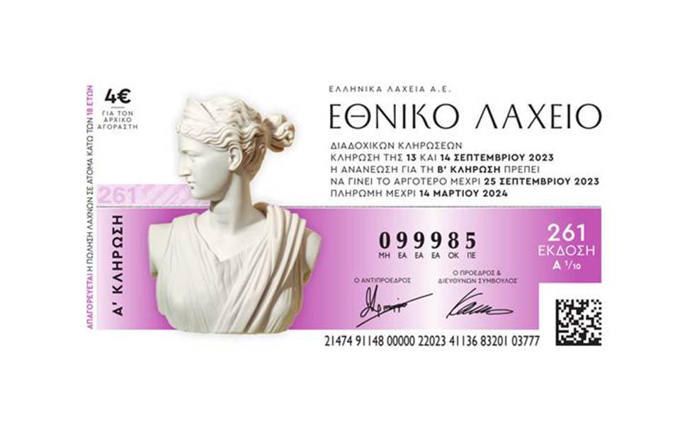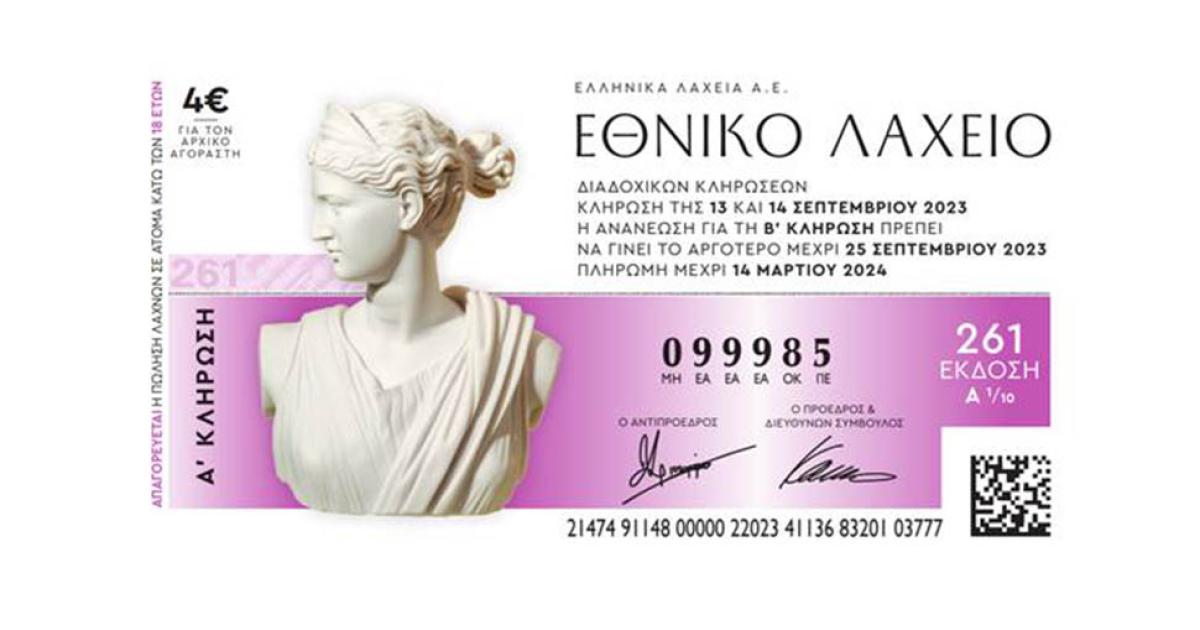 Το μεγάλο εγγυημένο έπαθλο του 1.000.000 ευρώ και πολλά ενδιάμεσα κέρδη, με μόνο με 4 ανανεώσεις, διεκδικούν οι παίκτες του Εθνικού Λαχείου με τους λαχνούς της 261ης έκδοσης, οι οποίοι διατίθενται στα καταστήματα ΟΠΑΠ σε όλη την Ελλάδα. Οι κληρώσεις της νέας έκδοσης του παιχνιδιού αρχίζουν την ερχόμενη Τετάρτη.