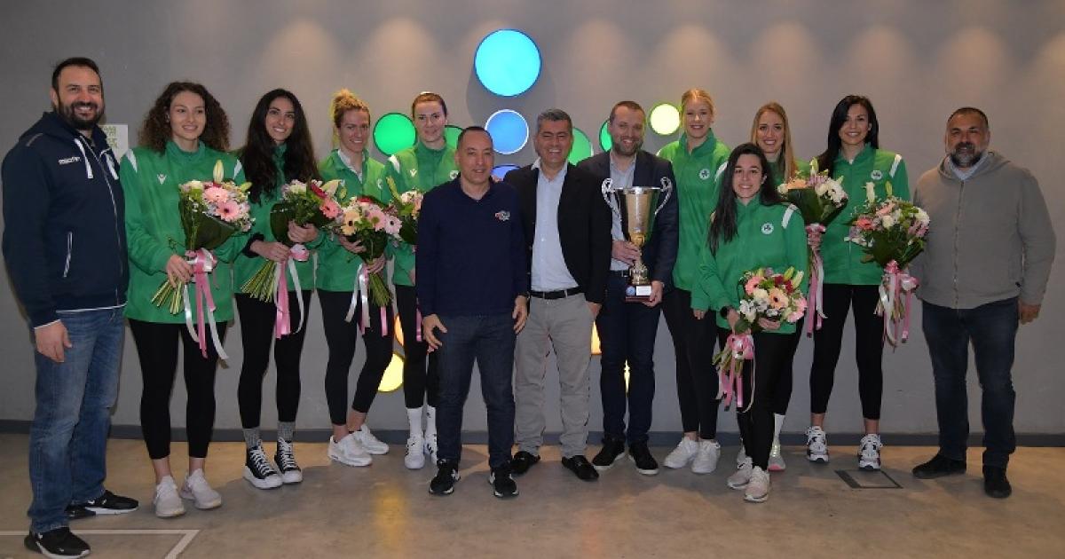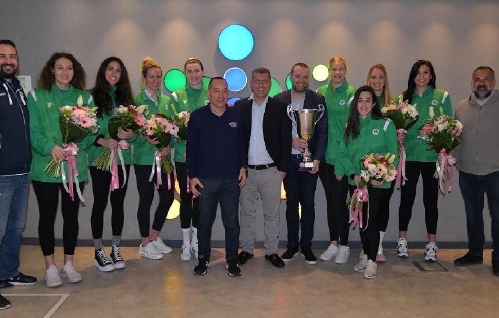 Ο κ. Χριστοφόρου συνεχάρη τις αθλήτριες του Παναθηναϊκού Εύα Χαντάβα, Πέννυ Ρόγκα, Αθήνα Παπαφωτίου, Μανωλίνα Κωνσταντίνου, Ειρήνη Χατζηευστρατιάδου, Μαργκαρίτα Στεπανένκο, Τζένιφερ Κρος, Μάρετ Γκροθούες, τον προπονητή Αποστόλη Οικονόμου και τον Team Manager Νίκο Λάζο και τους ευχήθηκε να συνεχίσουν τις επιτυχίες, τονίζοντας ότι ο ΟΠΑΠ, ως Μεγάλος Χορηγός του Παναθηναϊκού Α.Ο., βρίσκεται στο πλευρό τους.