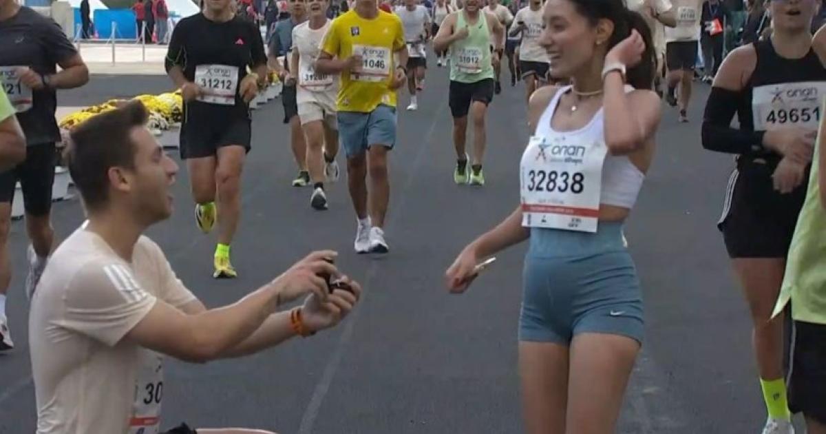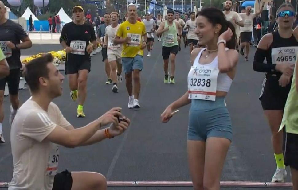 Συγκεκριμένα, κατά τη διάρκεια του τερματισμού του αγωνίσματος των 10 χιλιομέτρων του 42ου Αυθεντικού Μαραθωνίου, στο Παναθηναϊκό Στάδιο, ένας δρομέας… γονάτισε, κάνοντας πρόταση γάμου στην αγαπημένη του.