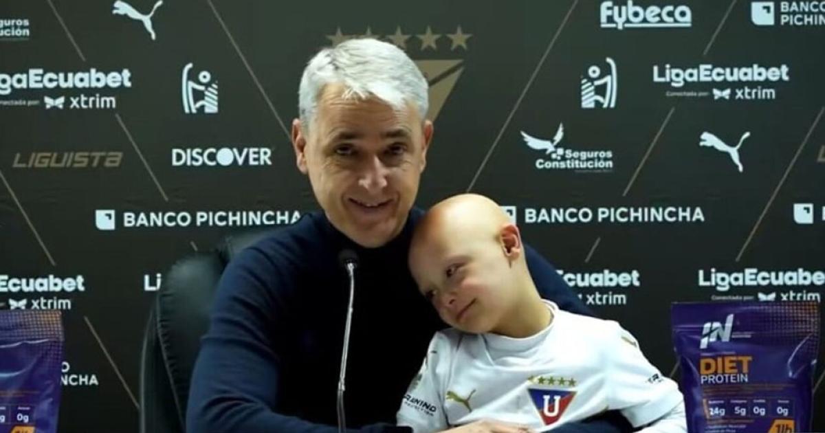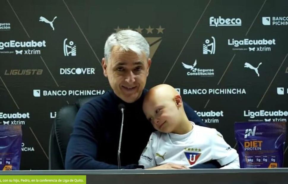 Tiago Nunes DT de #LDU asistió a la rueda de prensa en compañía de su pequeño hijo quien tiene #SindromeDown..