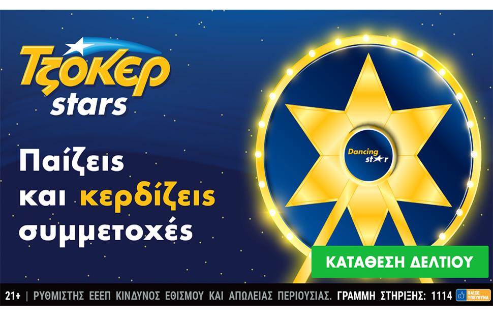 Οι παίκτες μπορούν να μάθουν περισσότερα για τα ΤΖΟΚΕΡ Stars, για τα οποία ισχύουν όροι και προϋποθέσεις, μπαίνοντας στο tzoker.gr και στην εφαρμογή ΤΖΟΚΕΡ.