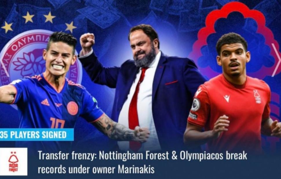 Με τη μεταγραφική αντεπίθεση της Νότιγχαμ και του Ολυμπιακού ασχολείται το αγγλικό σάιτ που απευθύνεται, κυρίως, σε μάνατζερ του ποδοσφαίρου και παράγοντες ομάδων. Εξετάζει τη «μεταγραφική φρενίτιδα» όπως την ονομάζει των δύο ομάδων ιδιοκτησίας του Βαγγέλη Μαρινάκη που απέκτησε συνολικά 36 ποδοσφαιριστές! Παράλληλα εκφράζει επιφυλάξεις κατά πόσο το μοντέλο των μεταγραφών της τελευταίας στιγμής μπορεί να πετύχει.