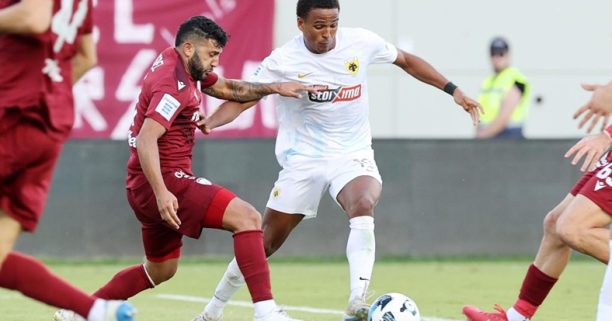 Στις εναέριες μονομαχίες ωστόσο η ΑΕΚ ήταν ευάλωτη, με αποτέλεσμα μια κεφαλιά του Ατανάσοφ να περάσει δίπλα από το δοκάρι του Στρακόσα (59΄) κι άλλη μια του Γκαράτε (64΄) να καταλήγει ελάχιστα πάνω από την οριζόντια δοκό.