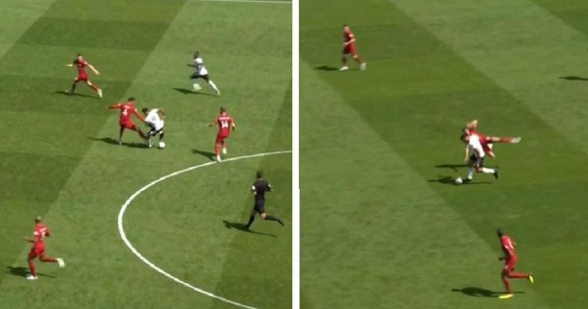 Ο θηριώδης Σέρβος στράικερ σε μια στιγμή του αγώνα, είχε γυρίσει αρκετά πίσω για να βοηθήσει στην ανασταλτική λειτουργία και στη συνέχεια κέρδισε την κατοχή. Ο Χέντερσον προσπάθησε να τον μαρκάρει αλλά ο Μίτροβιτς τον… πέταξε στον αέρα με το σώμα του, ενώ στη συνέχεια «χόρεψε» και τον Φαν Ντάικ με κοφτή ντρίμπλα στον χώρο του κέντρου.