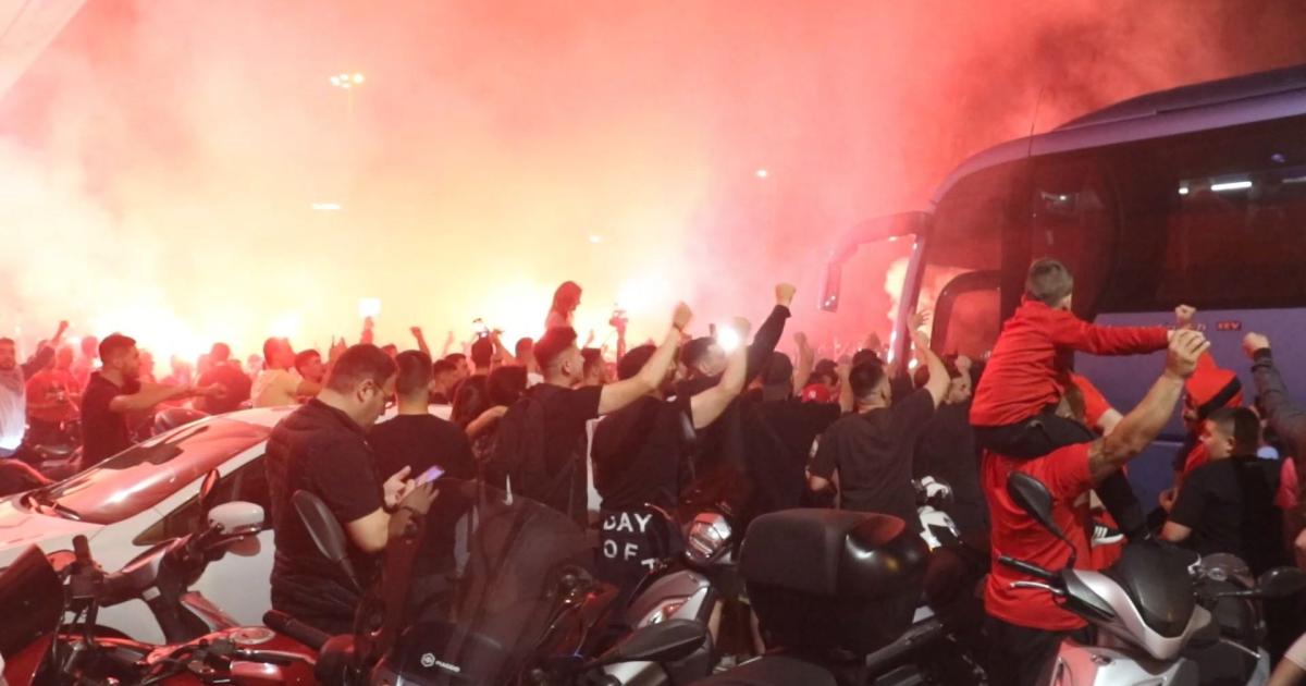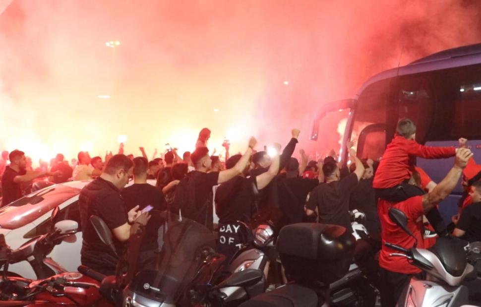 Χιλιάδες οπαδοί των «ερυθρόλευκων» περίμεναν εναγωνίως το πούλμαν της αποστολής, αποθεώνοντας την ομάδα του Γιώργου Μπαρτζώκα για τη μαγική χρονιά της!