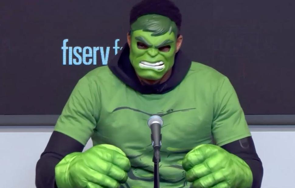 Ο λόγος για την συγκεκριμένη εμφάνιση του «Greek Freak» ήταν το Halloween με τον ίδιο να το φορά μια μάσκα Hulk.