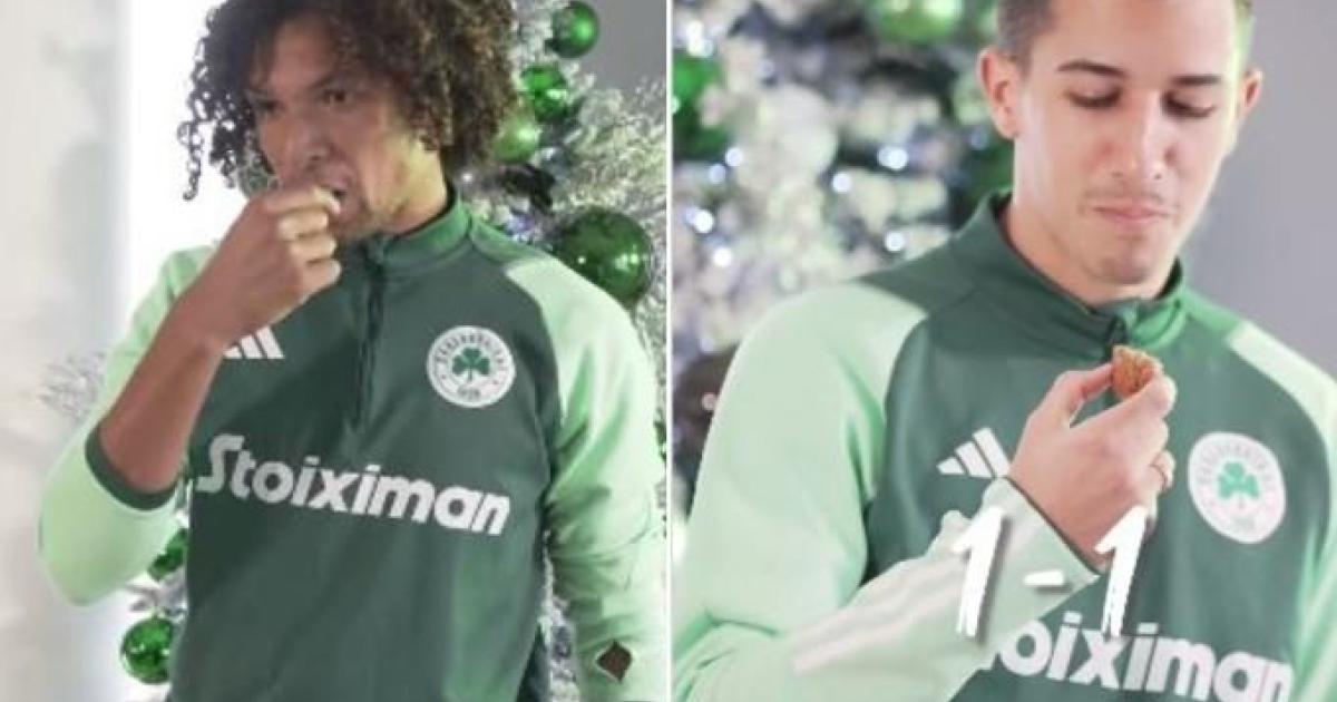 Έτσι, οι παίκτες του Παναθηναϊκού κλήθηκαν να απαντήσουν στο «αιώνιο» δίλημμα των Χριστουγέννων: κουραμπιές ή μελομακάρονο.