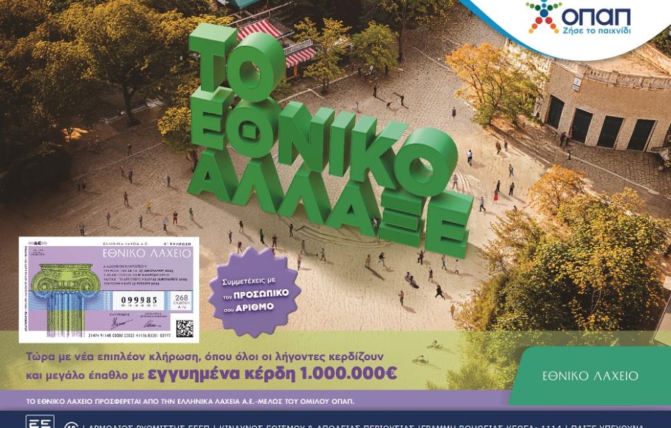 Ο Άγγελος Τάκης, ιδιοκτήτης καταστήματος ΟΠΑΠ στην Αθήνα, εξηγεί: «Το Εθνικό Λαχείο είναι ένα ιστορικό παιχνίδι και με τη νέα χρονιά αποκτά και νέα χαρακτηριστικά. Οι εκδόσεις κάθε έτους μειώνονται σε τέσσερις, από πέντε που ήταν μέχρι σήμερα, ενώ το εγγυημένο έπαθλο του 1 εκατ. ευρώ στον Πρώτο Λαχνό θα συνεχίσει να κληρώνεται στην τελευταία κλήρωση κάθε έκδοσης. Οι κληρώσεις της νέας έκδοσης ξεκινούν την Πέμπτη, με τους λαχνούς να είναι διαθέσιμοι στα καταστήματα ΟΠΑΠ σε όλη την Ελλάδα».