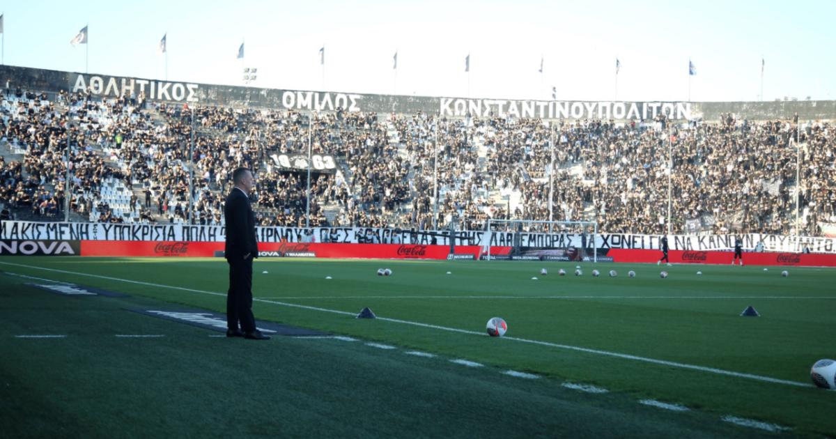 Ένα πανό που αναρτήθηκε μπροστά στο πέταλο της Θύρας 4 στάθηκε η αφορμή προκειμένου η ΑΕΚ να ενημερώσει παρατηρητή και διαιτητή στη λογική του να μην ξεκινήσει ο εκτός έδρας αγώνας της στην Τούμπα με τον ΠΑΟΚ για την όγδοη αγωνιστική των Play Off της Super League σε περίπτωση που δεν κατέβει οριστικά.