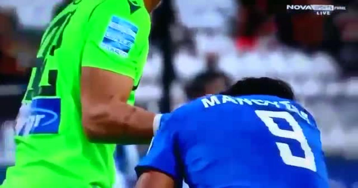 Όπως φαίνεται από το ριπλέι, υπήρξε επικίνδυνο παίξιμο από τον Αντελίνο Βιεϊρίνια στο κεφάλι του Μανούσου, τη στιγμή που ο επιθετικός της Λαμίας είχε μπει δυναμικά στη φάση και προσπαθούσε να απειλήσει τον Κοτάρσκι με κεφαλιά.