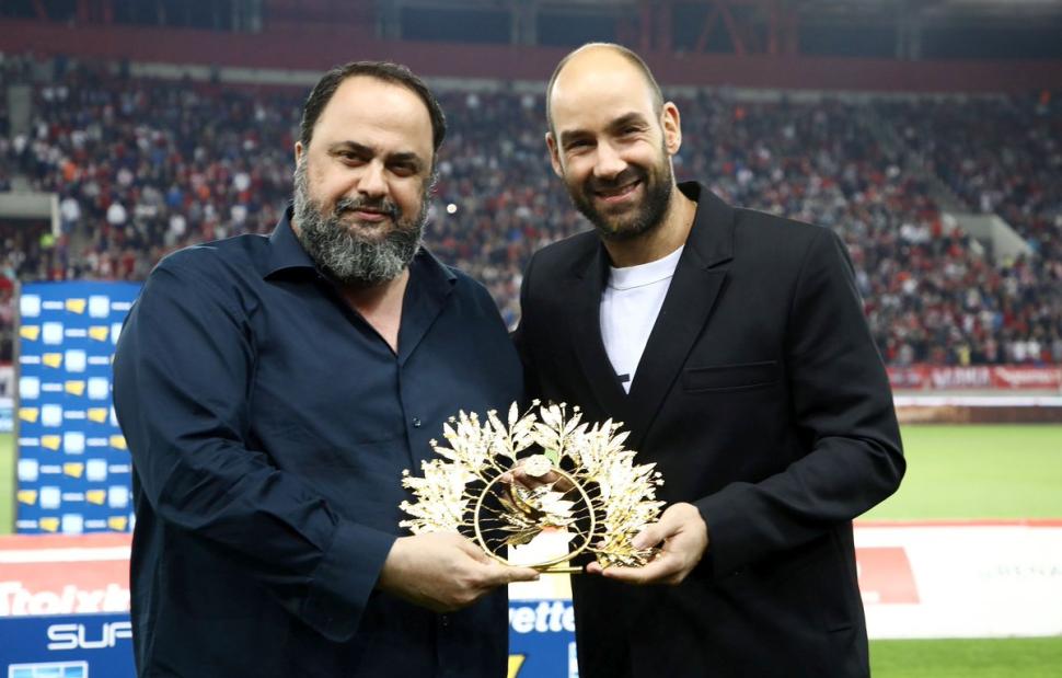 Πριν τη σέντρα της αναμέτρησης όμως εκτυλίχθηκαν συγκινητικές στιγμές, με τον πρόεδρο της «ερυθρόλευκης» ΠΑΕ, Βαγγέλη Μαρινάκη να βραβεύει τον Βασίλη Σπανούλη για την τεράστια συνεισφορά του στο μπάσκετ των Πειραιωτών τα τελευταία έντεκα χρόνια.