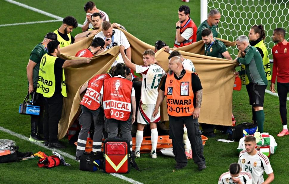Αμέσως το παιχνίδι διεκόπη και όλοι έσπευσαν πάνω από τον Ούγγρο επιθετικό που έδειχνε να μην έχει τις αισθήσεις του. Μάλιστα οι συμπαίκτες του τον κάλυψαν με πανί και λίγα λεπτά μετά μεταφέρθηκε εκτός αγωνιστικού χώρου με φορείο.