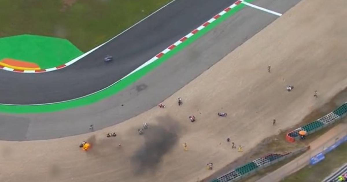 Τρομερό σκηνικό χάους προκλήθηκε σε αγώνα του Moto2 στο Πορτιμάο, όταν ξεκίνησε να βρέχει.