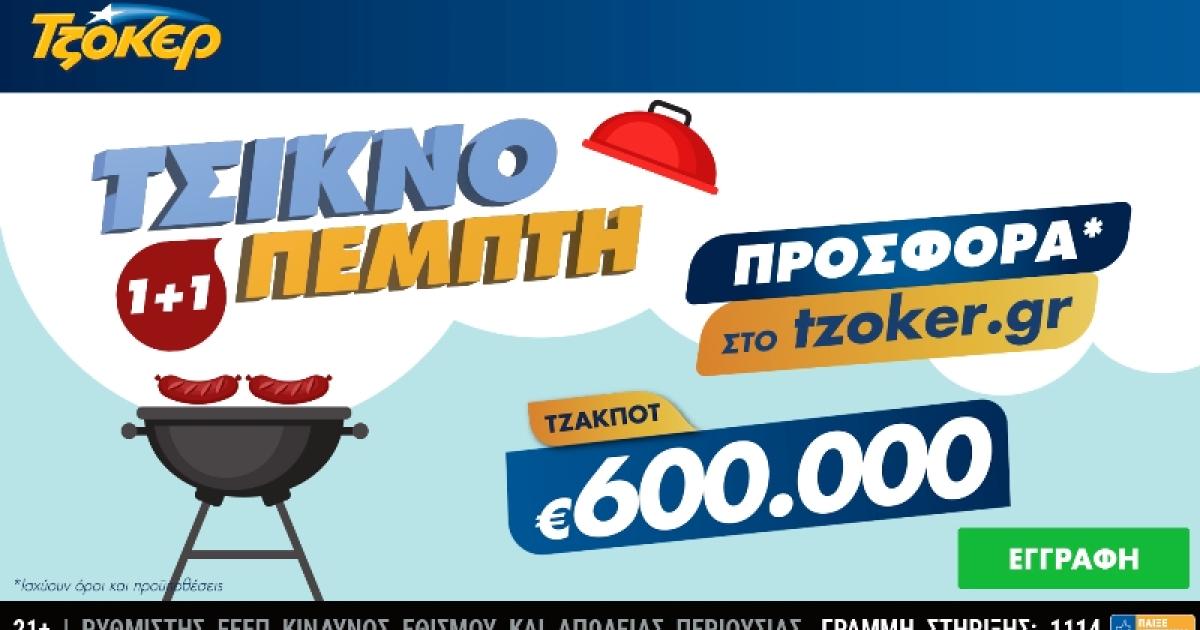 «Τσικνοπέμπτη 1+1» είναι η σημερινή προσφορά του ΤΖΟΚΕΡ online για όσους καταθέτουν διαδικτυακά τα δελτία τους. Μπαίνοντας στο tzoker.gr ή στο tzoker app οι παίκτες μπορούν να μάθουν περισσότερα σχετικά με την ειδική προσφορά του ΤΖΟΚΕΡ για την κλήρωση της Τσικνοπέμπτης, για την οποία ισχύουν όροι και προϋποθέσεις.