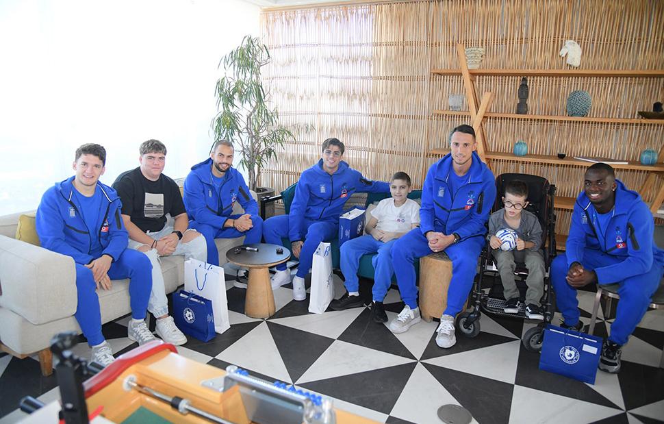 Οι διεθνείς γνωρίστηκαν με τα παιδιά, έβγαλαν φωτογραφίες μαζί τους και απάντησαν σε όλες τους τις ερωτήσεις, ενώ τους χάρισαν, ως αναμνηστικά δώρα, μία εμφάνιση της Εθνικής και ποδοσφαιρικές μπάλες. Η έκπληξη, ωστόσο, δεν σταμάτησε εκεί αφού στη συνέχεια γνώρισαν ακόμη περισσότερους παίκτες της ομάδας, παίρνοντας αυτόγραφα και βγάζοντας φωτογραφίες που θα τους θυμίζουν για πάντα αυτή τη μοναδική ημέρα που έζησαν.