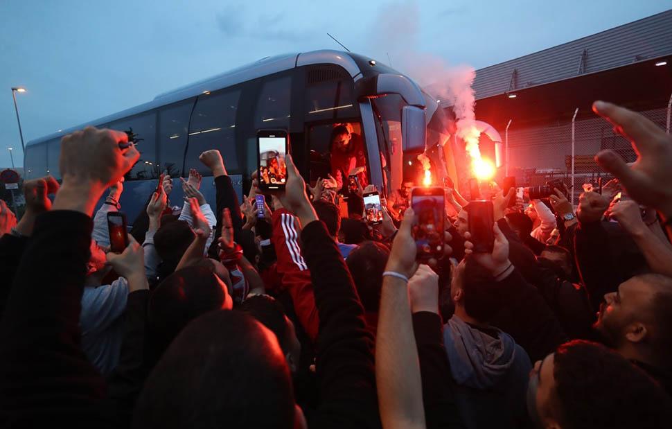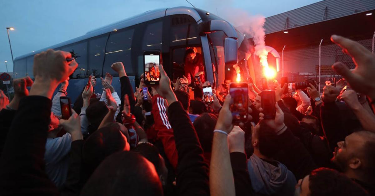 Κόκκινο βάφτηκε για άλλη μια φορά το πρωί της Πέμπτης το αεροδρόμιο «Ελευθέριος Βενιζέλος» από τους οπαδούς του Ολυμπιακού που συγκεντρώθηκαν για να υποδεχθούν τους παίχτες της ομάδας μπάσκετ η οποία με τη νίκη της στη Βαρκελώνη κόντρα στη Μπαρτσελόνα προκρίθηκε στο Final 4 της Euroleague όπου στον ημιτελικό θα αντιμετωπίσει τη Ρεάλ Μαδρίτης.