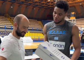 Ο Γιάννης Αντετοκούνμπο χάρισε από ένα ζευγάρι παπούτσια που φέρουν την υπογραφή του σε κάθε μέλος της Εθνικής ομάδας.