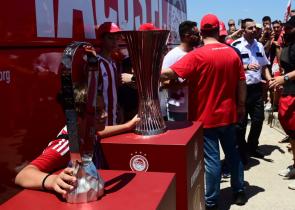 Όπως είχε ανακοινωθεί από την ΠΑΕ Ολυμπιακός, σήμερα (8/6), έφτασαν στην Αίγινα τα τρόπαια των Conference και Youth League, που κατέκτησαν την φετινή ...