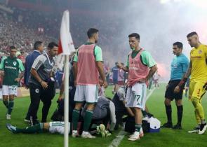 Ένα βίντεο από τις κερκίδες ακριβώς στο σημείο που βρίσκονται οι παίκτες του Παναθηναϊκού και κάνουν προθέρμανση. Η κροτίδα σκάει σε μεγάλη απόσταση α...