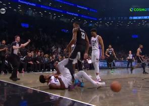 Μόλις στο τρίτο λεπτό του αγώνα των Νετς με τους Σίξερς, ο Τζοέλ Εμπίντ κλώτσησε τον Νικ Κλάξτον, χωρίς όμως να αποβληθεί.
