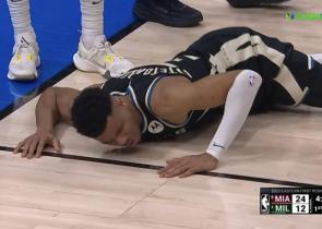 Ο Γιάννης Αντετοκούνμπο αποχώρησε με πρόβλημα στην μέση στο πρώτο δεκάλεπτο του πρώτου αγώνα της σειράς με τους Χιτ