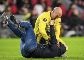 Μια απίστευτη σκηνή εκτυλίχθηκε στην αναμέτρηση της PSV με τη Σεβίλλη, με τον Ντμίτροβιτς να κάνει τον... μποξέρ και να σταματά έναν οπαδό που εισέβαλ...