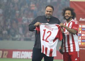 Ο Βαγγέλης Μαρινάκης, η παρουσία του στη φαντασμαγορική εκδήλωση της παρουσίασης του Μαρσέλο και η αγκαλιά του στον Βραζιλιάνο