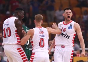 Ο Ολυμπιακός επιβλήθηκε με 74-61 του Παναθηναϊκού στο Στάδιο Ειρήνης και Φιλίας και έκανε το 1-0 στη σειρά των τελικών. Μετά τη νίκη, οι παίκτες των Ε...