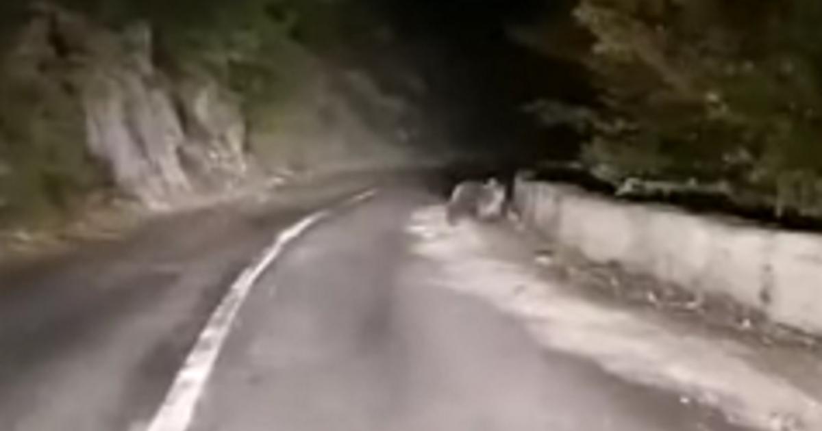 Ο οδηγός έχει ανοιχτά τα φώτα του αυτοκινήτου και προλαβαίνει να τραβήξει τις επίμαχες εικόνες μπροστά. Το αρκουδάκι τρέχει φοβισμένο και χάνεται στην πυκνή βλάστηση της περιοχής. Η μητέρα του δεν έκανε την εμφάνισή της, στο σημείο.