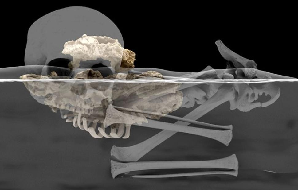 Το σώμα του τοποθετήθηκε σε έναν τάφο, τυλιγμένο σε ένα σάβανο, σε εμβρυική στάση, με το κεφάλι του ακουμπισμένο σε ένα «μαξιλαράκι». Και για τους αρχαιολόγους αυτό σημαίνει ότι οι κυνηγοί-τροφοσυλλέκτες πρόγονοί μας που κατοικούσαν στην περιοχή είχαν ήδη αναπτύξει ταφικές τελετές.