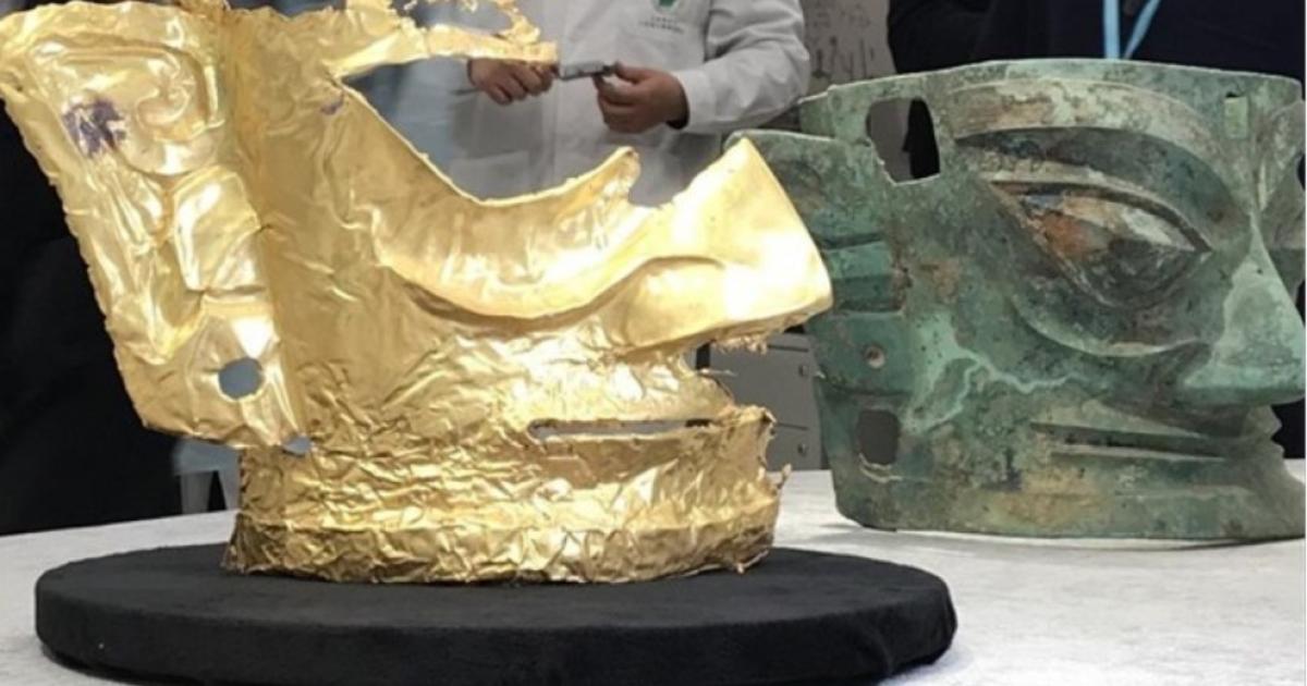 Η τελετουργική μάσκα, βάρους 280 γραμμαρίων, εκτιμάται ότι κατασκευάζεται από 84% χρυσό και είναι ένα από τα 500 αντικείμενα που ανακαλύφθηκαν πρόσφατα σε έξι λάκκους θυσιαστηρίων, σύμφωνα με την Εθνική Υπηρεσία Πολιτιστικής Κληρονομιάς της χώρας.