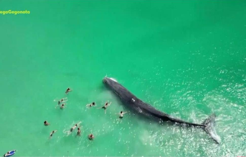 Βίντεο που αναρτήθηκε στο διαδίκτυο και δείχνει κολυμβητές στην παραλία Leighton, κοντά στο Περθ της Αυστραλίας, να πλησιάζουν μια φάλαινα που κολυμπάει κοντά στην ακτή.